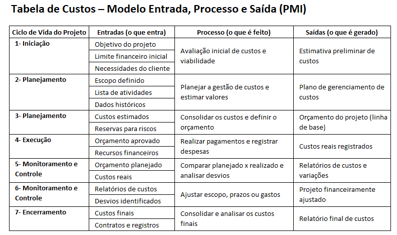 A gestão de custos é um dos pilares para o sucesso de qualquer projeto. Um projeto pode estar bem planejado em termos de prazo e escopo, mas sem controle financeiro ele pode gerar prejuízos, comprometer resultados. e rapidamente se tornar inviável. De acordo com as boas práticas do PMI (Project Management Institute), a gestão de custos tem como objetivo planejar, estimar, organizar e controlar os recursos financeiros, garantindo que o projeto seja executado dentro do orçamento aprovado e com previsibilidade.